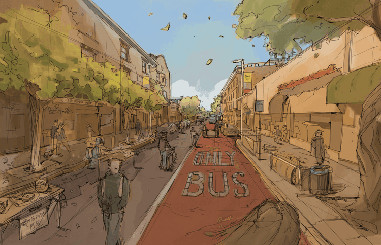 After conversations with stakeholders, including AC Transit, TBID and city staff, as Greenberg explained in his interview, Telegraph for People released option 5 in January 2022. On three blocks from Bancroft to Haste, the street would be remade to be at the same level with a bus lane running through the middle of the street, a redesign aimed at prioritizing public transit and pedestrian safety.